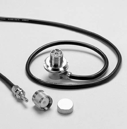 Comet 3D5M standard mobile coax cable assemblies can be used with a lip mount or alone as a permanent hole mount. Comet 3D5M mobile mounts come with 16.5 ft. of low-loss coax with gold-plated UHF connectors, and an O-ring is included to help keep moisture from migrating under the threaded nut holding the connector in place. The PL-259 connector has a removable barrel, so the coax can be routed easily through small holes or tight places without removing the connector altogether. They can also be disassembled and reassembled to shorten the length of the coax. Comet 3D5M standard mobile coax cable assemblies are a simple, easy way to mount your antenna.