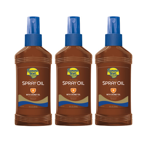 Banana Boat Deep Tanning Oil Sunscreen, Pump Sun Screen Spray with Coconut Oil, SPF 8, 8oz. - Pack of 3
